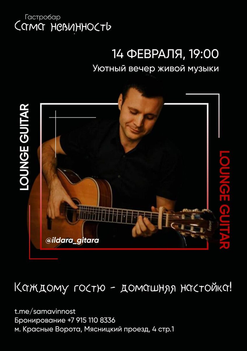 Джазовые композиции и незабываемые мелодии в акустическом исполнении замечательного гитариста Ильдара Абдулова. 14 февраля в 19:00. Стоимость билета — 1000 рублей.