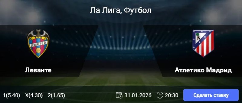 Статистика Леванте: Оборона остается слабым местом клуба, пропустившего 34 мяча — хуже показатель только у «Жироны» (35). Матчи с участием валенсийцев часто получаются результативными: в семи последних играх забивалось как минимум два гола, а в 11 из 13 недавних домашних встреч в Примере отличались обе команды. Статистика Атлетико Мадрид: Команда не пропускает более одного гола на протяжении шести матчей чемпионата подряд, а ее результативная серия в турнире достигла пяти игр. С 38 забитыми мячами атака «Атлетико» уступает в чемпионате Испании только «Реалу» (45) и «Барселоне» (58). 🎯 П2 🎲 кф (1.65) 👉 СДЕЛАТЬ СТАВКУ 🎁 ФРИБЕТ WINLINE - 3000₽ (промокод: BETWIN) 👉 СМОТРЕТЬ ПРОГНОЗ