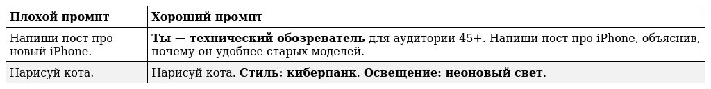 Вот три главных правила, которые превратят ваш запрос в идеальный результат (работает для ChatGPT, Claude, Midjourney и других):