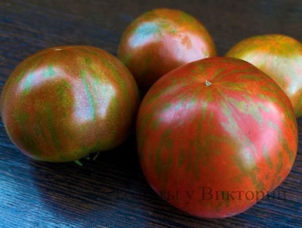 Гном Санди страйп (Dwarf Sandy’s Stripes). Среднерослый, среднеспелый сорт. Плоды округлые, массой около 100 г, шоколадного цвета с блестящими зелеными полосками, с сочным и очень мягким вкусом.