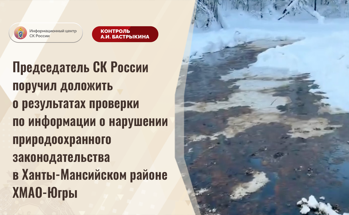 Председатель СК России поручил доложить о результатах проверки по информации о нарушении природоохранного законодательства в Ханты-Мансийском районе Ханты-Мансийского автономного округа — Югры