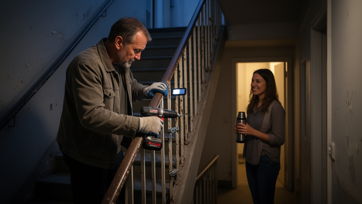 Вечером он снова вышел в подъезд. Сначала постелил под перила старую газету, чтобы не сыпать мусор на ступени. Потом просверлил новые отверстия, вставил анкера, затянул гайки. Дрель гудела на весь пролёт, и Сергей ловил себя на том, что ждёт, когда кто-нибудь выйдет и скажет: «Вы что тут устроили?» Никто не вышел. Только на пятом этаже хлопнула дверь, кто-то прошёл по коридору и затих.