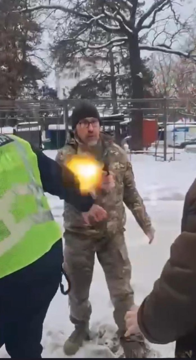 Очкастый психопат из ТЦК ударил пожилого мужчину и выстрелил в женщину.