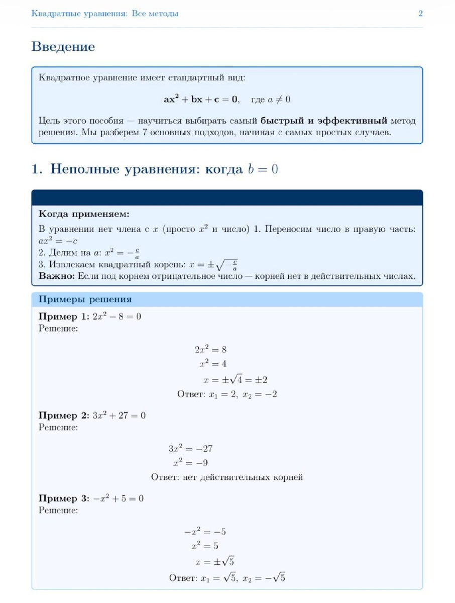 Всем привет! Владислав здесь 🤩 Часто ко мне приходят ученики с одним вопросом: «Как научиться быстро решать квадратные уравнения и не путаться в методах?» Я систематизировал весь свой опыт и подготовил компактную рабочую тетрадь на 12 страниц, которая станет вашей универсальной шпаргалкой (для ума, конечно ⚡️). 🎞 Что внутри? • Все 7 методов решения: от неполных уравнений до теоремы Виета и специальных случаев. • Алгоритм-подсказка: как выбрать самый быстрый способ. • Примеры с подробным разбором. • Задачи для самопроверки. 🔗 Зачем это нужно? Чтобы на ОГЭ или ЕГЭ вы смотрели на уравнение и сразу видели кратчайший путь к ответу, экономя драгоценные минуты. ⏲️ А ещё — интерактив! В тетради есть задания «Реши самостоятельно». Хотите проверить ответы? 👋 Ищите их в этом канале по кодовому слову: которое вы найдете в самом файле Просто введите это слово в поиск по каналу, и найдёте пост с ответами ко всем заданиям. Скачивайте тетрадь, тренируйтесь, проверяйте себя. И пусть квадратн