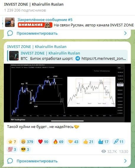 🌟 8 лет в трейдинге, МИНУС десятки миллионов долларов. Руслан Скамрулин — живое доказательство того, что в трейдинге можно провести десятилетия и не научиться вообще ничему. Сук, даже медведя на велосипеде за три года учат ездить. P.S. Пост трёхмесячной давности, график с разметкой он взял из Твиттера. @scamshot