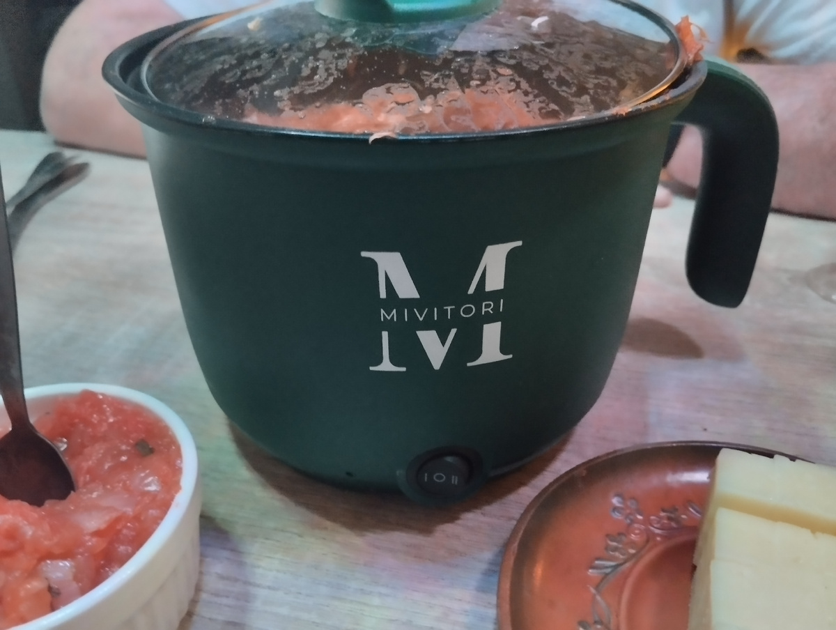 Вечерком в пятницу мы скромненько поужинали в нашем деревенском домике. Я сварила суп с грибами в новой электрокастрюле.