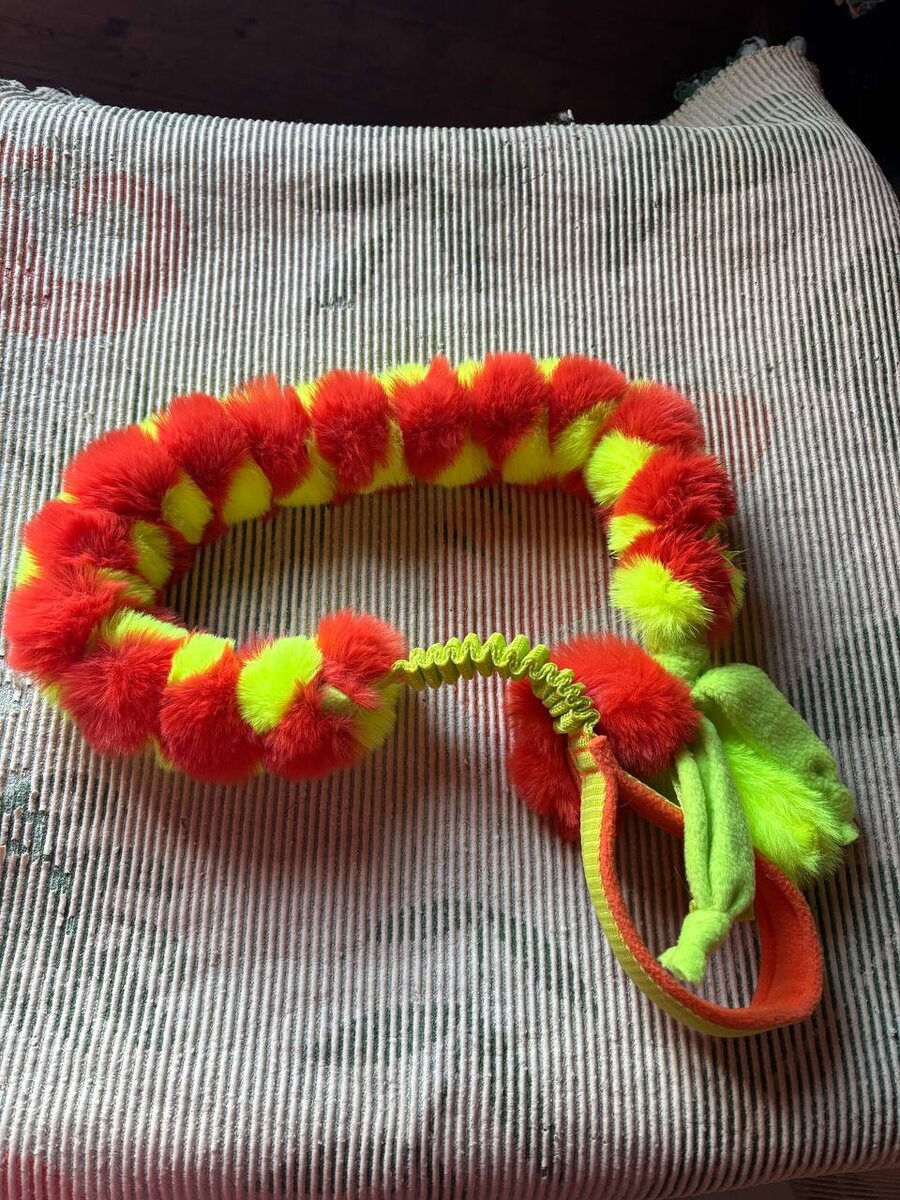 ❤️ Он чуть с ума от счастья не сошел 🤣 Правда, показала ему, дала попробовать «на зуб» и… тут же убрала. Будем играть только на тренировках. У тайцев в целом все плохо с игровой мотивацией, и, чтобы развивать и поддерживать ее на должном уровне, приходится подбирать игрушки, которые понравятся. Обычно это большие и мягкие перетяжки или ухватки с натуральным мехом кролика, овцы, козы. Они пахнут «зверем» и включают добычный инстинкт. Также очень важно «поддаваться» тайцу в игре, чтобы он побеждал, выигрывал, пытался догнать и отобрать. И обязательно заканчивать игру в момент наибольшего интереса собаки. А вот если просто отдать такую игрушку для самостоятельной игры — скорее всего, таец за 2-3 минуты разберет ее на лоскуты и потеряет к ней интерес. Поэтому у таких игрушек всегда есть мягкая ручка с амортизацией, чтобы хозяину и собаке было весело и удобно играть совместно. Заказывала тут: https://vk.ru/id49403365 У Елены большой ассортимент подходящих для тайцев игрушек и оче