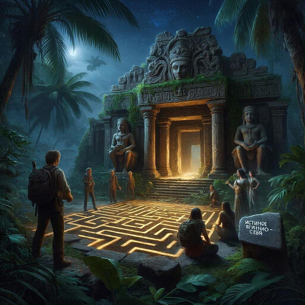Следуя подсказкам рисунка, Павел двигался уверенно, несмотря на возникающее напряжение и страх потерять направление. Несколько часов прошло, прежде чем он достиг центра круга, где обнаружил небольшую каменную табличку с надписью: "Истинное богатство — знание себя".