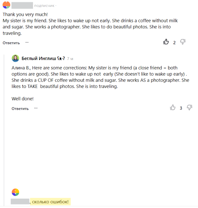Однажды под моим постом кто-то оставил комментарий: “сколько ошибок!” в ответ моему читателю.