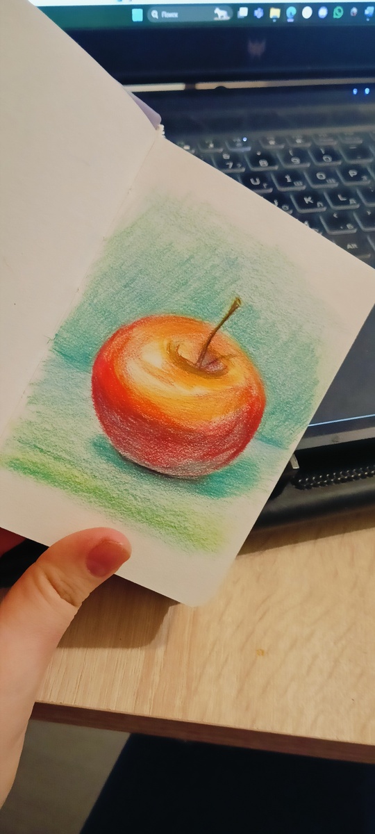 Опять грядут морозы сегодня утром уже -35, к ночи обещают -38. Детей завтра наверняка не будет, опять выпадут уроки. Что поделать... А я, все таки, попробовала порисовать. Такое необычное яблочко, очень не натуральное, очень странной формы и неимоверно глянцевое, но суть рисунка была не в реализме... Получилось сносно учитывая ограничение времени в 5 минут, которое я сама себе установила... но можно было и лучше. Хочу порисовать стекло, к карандашам придется добавить акриловый маркер, попробую сегодня, но время надо увеличить. Легче не становится, пока болею. Но энтузиазм так и прет. Очень хочется теперь попробовать и то, и это, и пятое, и десятое... вот где бы столько времени найти? Вот сейчас, как будто бы, стоит немного поумерить пыл, замедлиться и все спланировать... Думаю займусь именно этим сегодня. В общем сегодня будет такой день обдумываний и планирования. Ничего интересного. Может быть сделаю еще пару зарисовок, покажу их завтра или вечером.