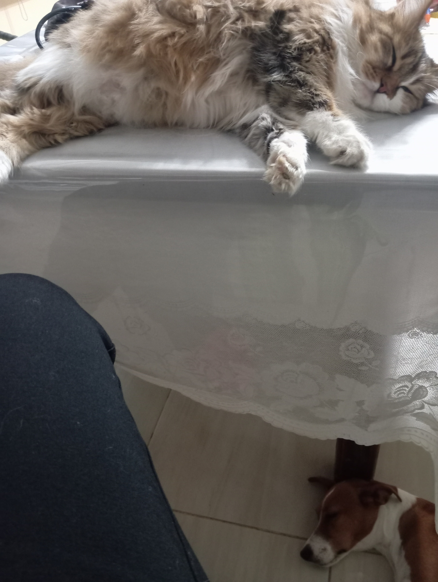 Если говорить о животных, то они полностью привыкли к чужой тёте. Ещё бы - она тискает мягкую пушистую кошечку и ежедневно выводит на поводке умную собаку.