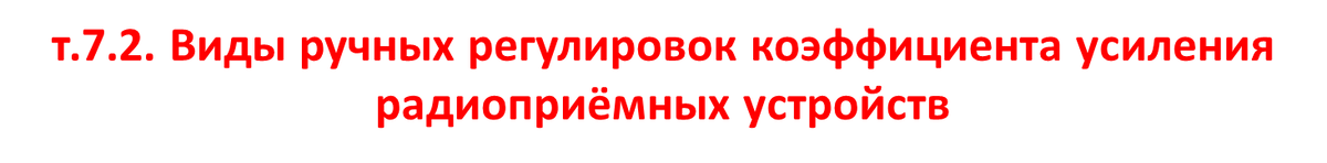 1. Способы регулировки коэффициента усиления РПрУ В радиоприёмных устройствах применяют следующие способы регулировки коэффициента усиления - режимная регулировка коэффициента усиления; - регулировка за счёт изменения связи между каскадами (р1 и р2); - регулировка усиления за счёт изменения глубины отрицательной обратной связи. Многие типы регулируемых усилительных каскадов имеют значительный диапазон регулировки усиления (50...60 дБ), однако, несмотря на это, в реальных условиях такую глубину регулировки в одном каскаде иметь нецелесообразно, что связано либо с опасностью повышения нелинейных искажений при больших уровнях сигналов, либо с возможностью снижения отношения сигнал/шум. Поэтому расчётную глубину регулировки одного каскада ограничивают до 10...35 дБ в зависимости от места каскада в схеме приёмника. Далее приводятся только схемы, пояснения будут даны на лекции. При воспроизведении приведенной информации не забудьте указать ссылку на канал или на первоисточник: Бокова О.И., Ж