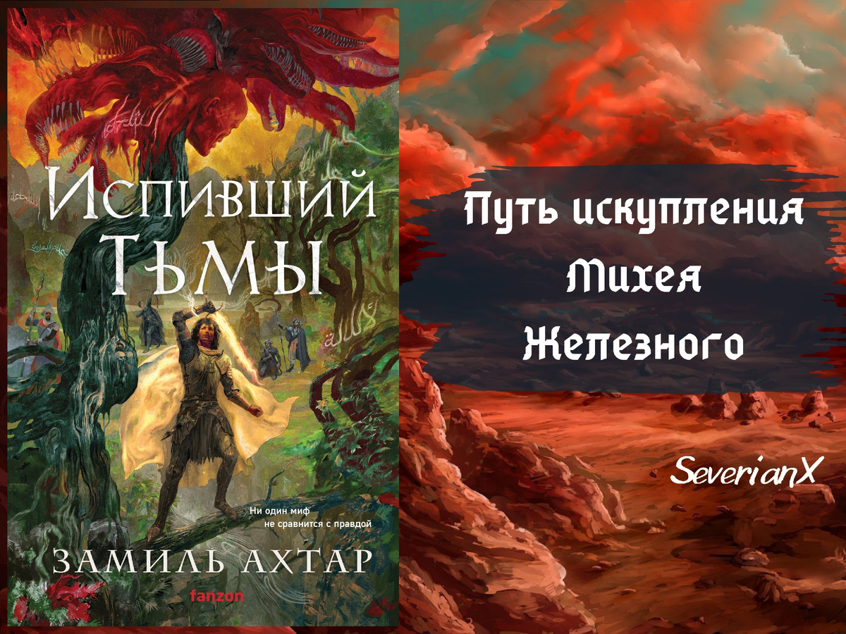 «Испивший тьмы» – жёсткое и очень мрачное фэнтези о паладине-завоевателе, который пытается переписать собственное прошлое и заплатить по сделке с демоном, не обесценив остатки человеческого в себе. Роман опирается на ближневосточную историю и хоррор-эстетику цикла «Стальные боги», но делает ставку не столько на масштаб войны, сколько на внутренний надлом главного героя. Действие по-прежнему разворачивается в мире цикла «Стальные боги», вдохновленного эпохой великих держав, Османской империей и крестовыми походами. Артиллерия, религиозные войны, схватки Креста и Полумесяца остаются важным фоном. Правда, Ахтар придает всему этому фэнтезийный антураж, добавляя магию, демонов, богов и меняя названия. Главный герой – Михей Железный, фанатичный полководец и паладин, завоевавший полмира и ставший фигурой почти мифического масштаба. К моменту начала романа Михей уже заплатил огромную цену за свои победы: все его завоевания превратились в прах, армия и флот разбиты, собственный народ считает ег