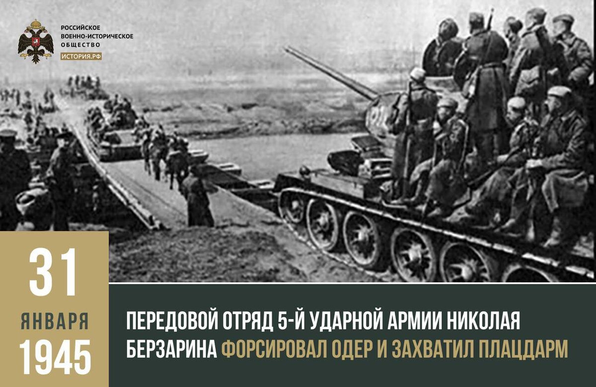 📆 31 января 1945 года передовой отряд 5-й ударной армии Николая Берзарина форсировал Одер и захватил плацдарм на участке Кинитц — Рефельд