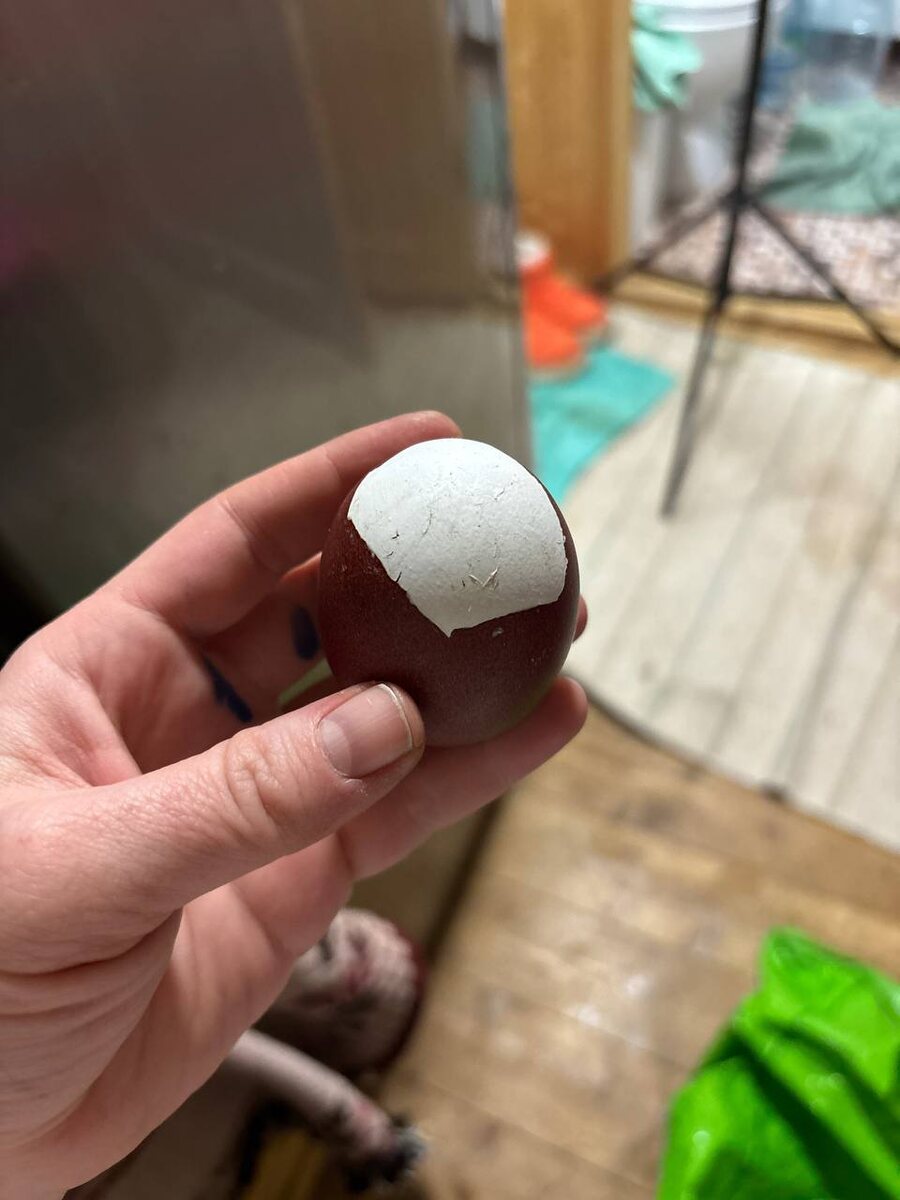 . Маранов вообще не смотрела , через их скорлупу ничего не видно . А у Барневельдеров и орпингтов . Много прям видного уже оплода. Но штук 10 наверно ещё под вопросом . Что то пометила , после 10 дня ещё посмотрю -2 разбитых 3 колотых Одного марана я заметила в самом начале ,может такое приехало или я стукнула когда выкладывала , его я заклеила яичной плёнкой (от сырого яйца, помыла и приклеила) Два сегодня коцнутых Голубых Барневельдеров заклеила тканевым пластырем .
