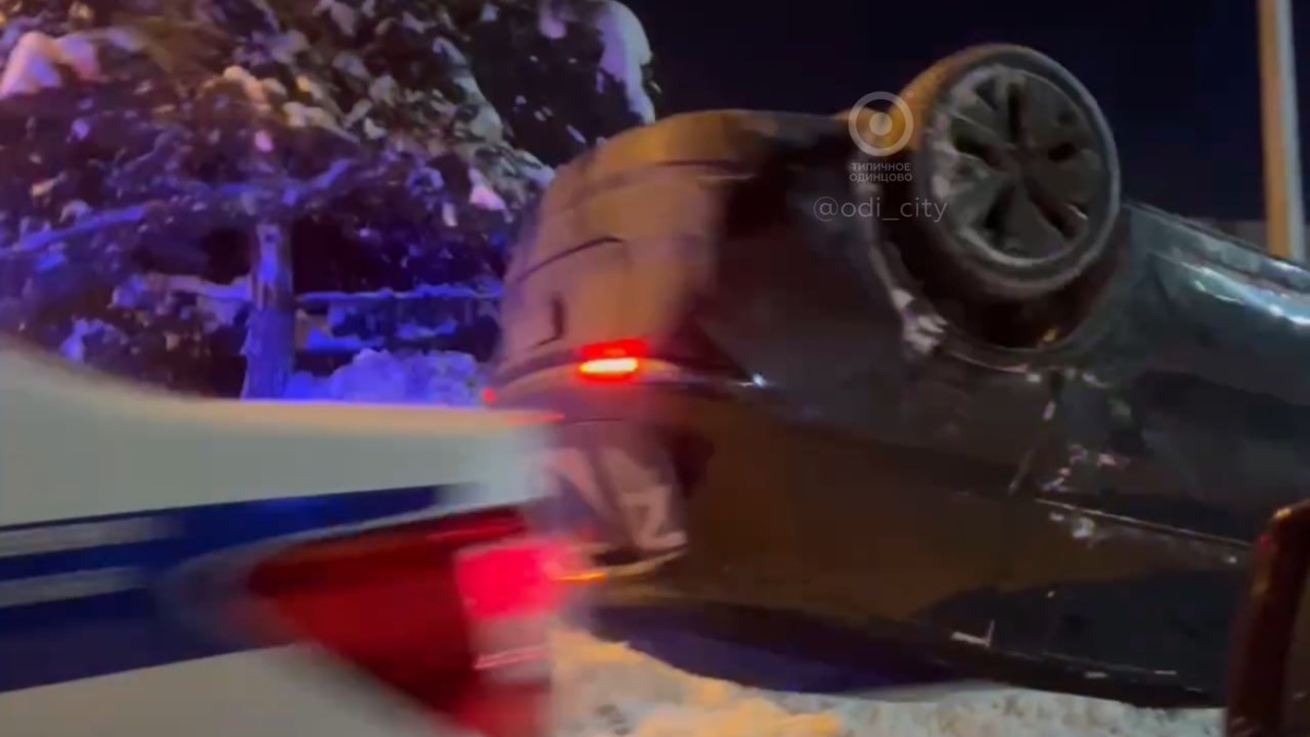 Перевернутая машина под эстакадой в Юдино у Глобуса.