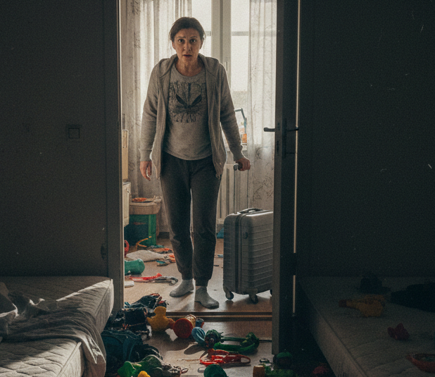 На полу — матрасы, одеяла, подушки. Три ребёнка — семь, десять и тринадцать лет. Разбросанные игрушки, фантики, крошки.