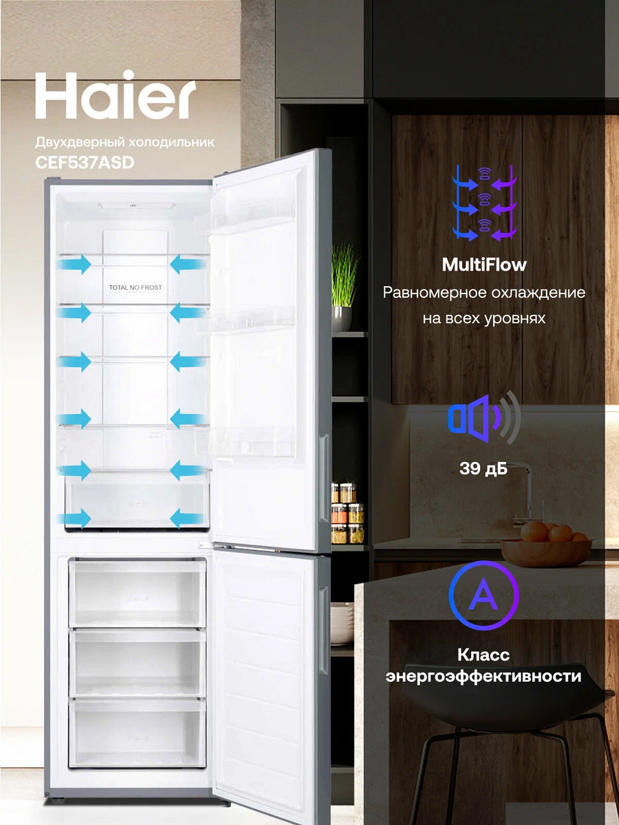 Нужен надёжный холодильник с современным функционалом, но не хотите переплачивать? Выбор правильной модели — это баланс вместительности, энергоэффективности и удобства в эксплуатации. Ошибиться легко: одни холодильники шумят, другие — «съедают» электричество, третьи — неудобны в организации пространства. В этом обзоре сравним 5 актуальных моделей Haier — разберём сильные и слабые стороны, ключевые параметры и цены. 1. Haier CEF537ASD Категория: двухкамерный холодильник с нижним морозильником.