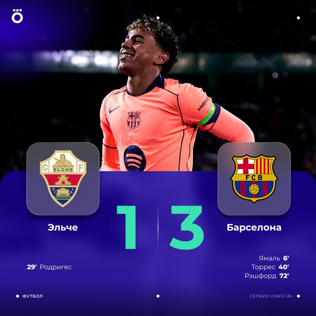 ⚽ «Барса» справилась с «Эльче». Снова пошел отрыв от «Реала» в таблице.