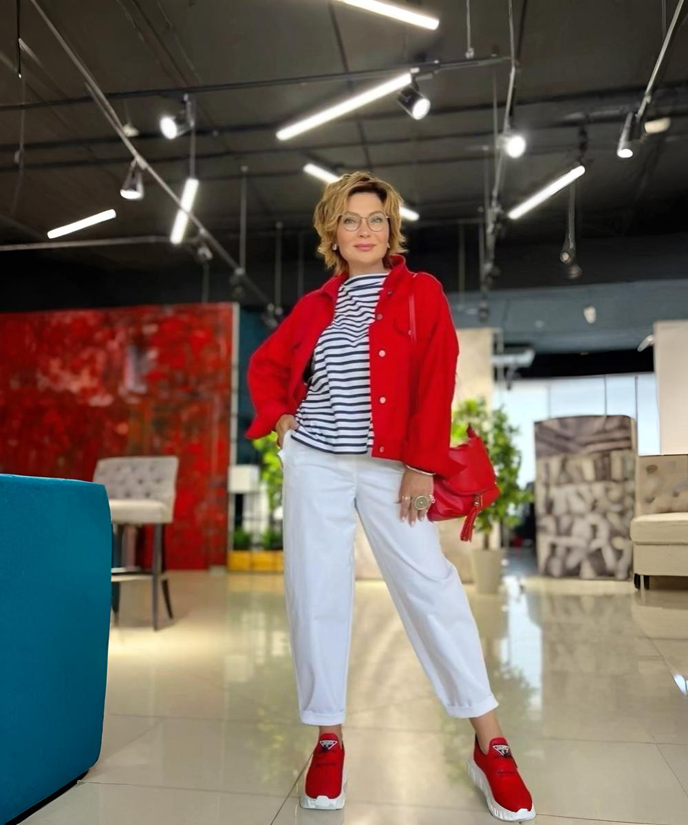 Весна 2026 года предлагает женщинам элегантного возраста свежие и вдохновляющие идеи для повседневного гардероба. В этом сезоне акцент сделан на комфорт, практичность и утонченную простоту, которая подчеркивает индивидуальность и стиль. Ниже подборка из 10 стильных ансамблей, которые помогут выглядеть модно и чувствовать себя уверенно каждый день. Белые джинсы и футболка в полоску – классическое и всегда актуальное сочетание на весну. Красная джинсовка, сумка и кеды добавляют наряду динамичности и яркости. Голубая куртка идеально подходит для весенних дней, придает образу легкость и воздушность. Коричневый брючный комплект из кашемира - идеальный выбор для создания расслабленного весеннего образа. Голубая рубашка добавляет свежести и контраста. Коричневые носки, мокасины и сумка-тоут делают его практичным и стильным. Пудровые прямые брюки в сочетании с футболкой цвета фуксии и кожаной розовой курткой создают нежный и женственный образ. Такой комплект отлично подойдет для прогулок и