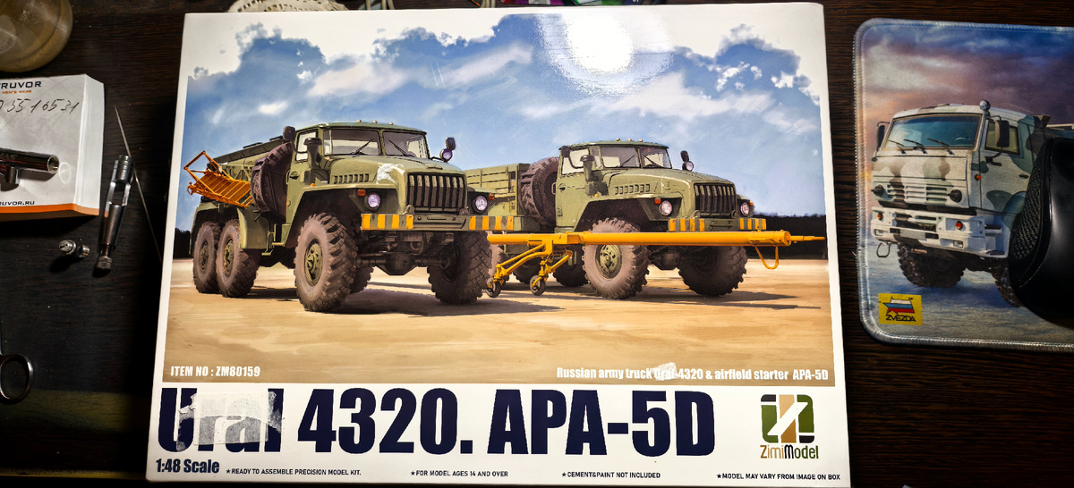 Ну что, руки все таки тянутся помоделить. Но то будет на неделе и пройдем мы по МИ-8, узнаем что там в Питере хорошего, насколько Женя продвинулся в работе с вертушкой. А пока тоже 48 масштаб и это будут два Урала в компанию к вертушке.