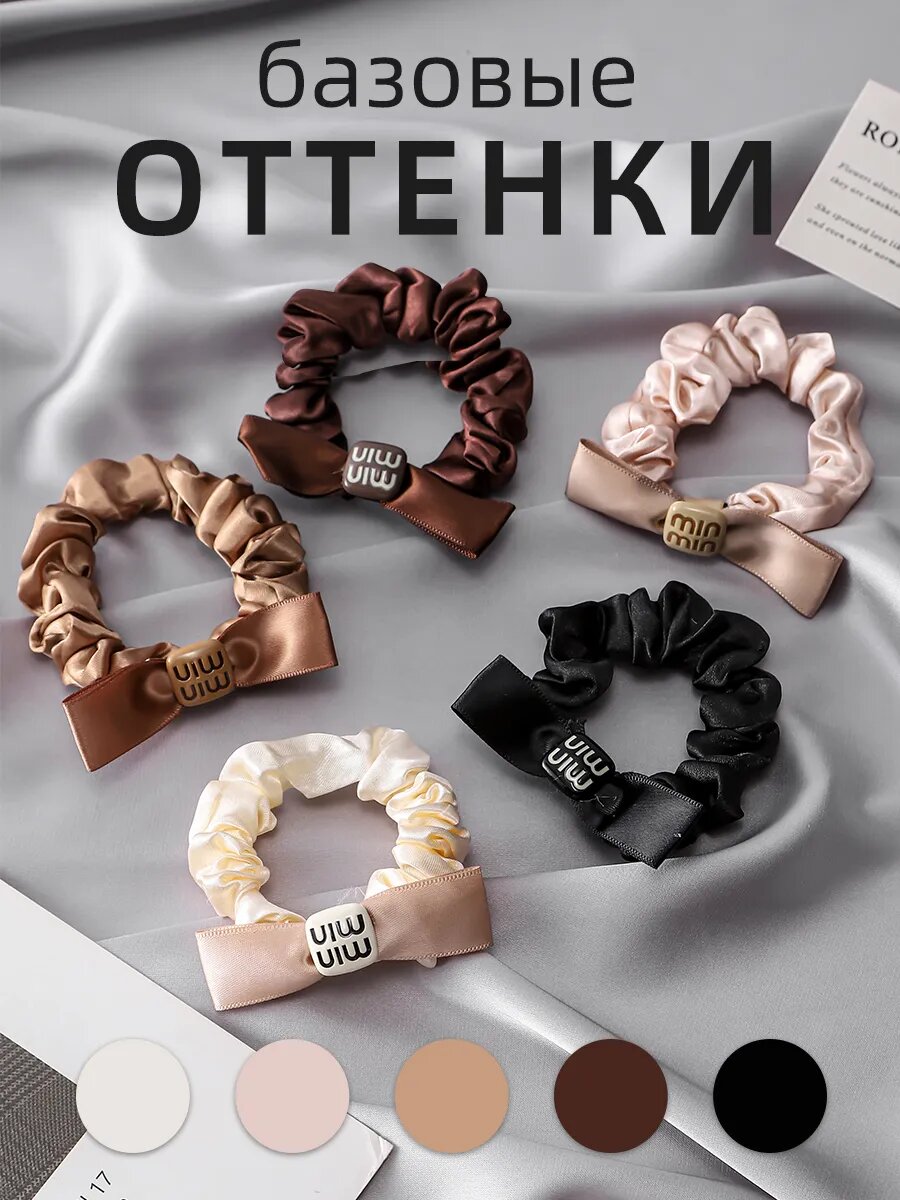 Нажав на артикул можно перейти на товар (не реклама) Шелковые резинки с объемными элементами — нежность и стиль в каждой детали! Набор из 10 резинок (по 2 каждого цвета: белый, черный, бежевый, розовый, коричневый) мягко фиксирует волосы, не повреждая их. Атласный материал и минималистичный дизайн придают прическе элегантность и игривость. Подходят для всех возрастов.