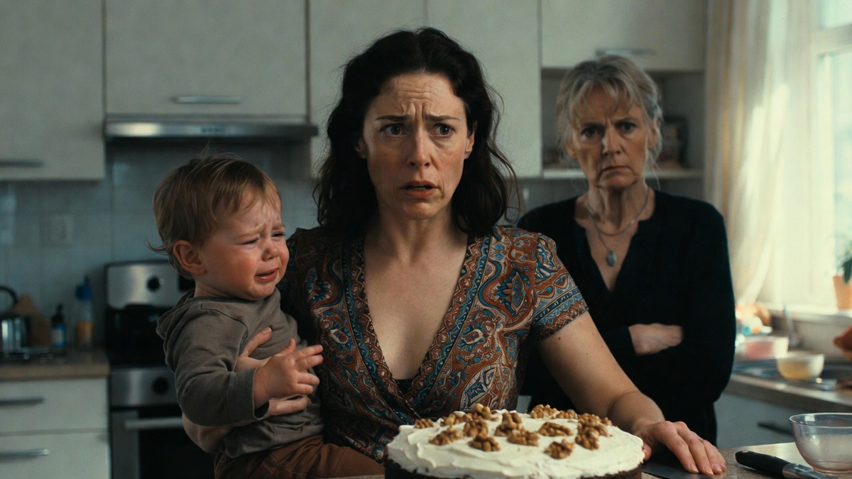 Я опустила Мишу на пол, шагнула к свекрови. Схватила торт двумя руками и швырнула ему в стену. Крем полз по обоям. Дети заревели.