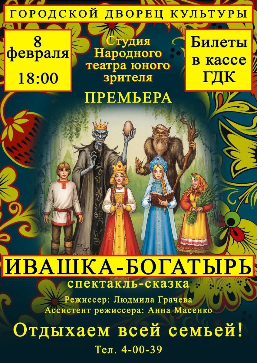🏛️ ГДК г. Азова ПРЕМЬЕРА Спектакль-сказка «ИВАШКА - БОГАТЫРЬ», в исполнении студии Народного театра юного зрителя. Режиссёр: Людмила Грачева Ассистент режиссёра: Анна Масенко 🎟️Билеты в продаже в кассе ГДК (временно касса работает с пн по пт с 17:00 до 19:00 и 8 февраля (воскресенье) касса будет работать с 17:00 до 18:30) 🎫Стоимость билетов: 200 рублей. ☎️ 88634240039 (касса ГДК) Спектакль по пьесе А.Горбунова. Тема сказки - противоборства злых и добрых сил внутри главного героя – Ивана. Он стойко переносит соблазны всякой нечисти, окрепнув и закалившись, побеждает зло и спасает своих подружек Василис. 👉Подписаться на канал "АН"❗️