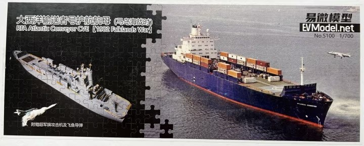 Китайская EV Model выпускает на 3D-принтере модель английского контейнеровоза Atlantic Conveyor в масштабе 1/700, принимавшего участие в