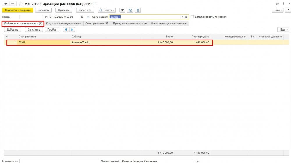 Иногда контрагент не может вернуть долг из-за ликвидации компании или истечения срока исковой давности. В такой ситуации задолженность необходимо списать. Разберемся, как это правильно оформить в 1С:Бухгалтерия 8.3 с помощью документа «Корректировка долга». Шаг 1: Подготовка и инвентаризация расчетов Перед списанием обязательно проведите инвентаризацию и оформите ее результаты. Совет: Если списываете задолженность с истекшим сроком исковой давности, укажите сумму в графе «В т.ч. истек срок давности». Шаг 2: Создание документа «Корректировка долга» Основная операция выполняется следующим документом. Шаг 3: Выбор счета списания (Ключевой этап) Списание можно провести за счет резерва или отнести на прочие расходы. Вариант А: Списание за счет резерва Аналитика: Заполните договор и документ реализации, по которым ранее создавался резерв. Вариант Б: Списание на прочие расходы (если резерв не создавался) Важное примечание: Если резерв создавался только в бухгалтерском учете (БУ), а в налогово