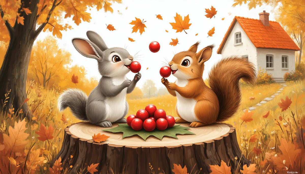 В уютном домике с оранжевой крышей жил маленький кролик Тим. У Тима была самая замечательная в мире вещь — коробка с вишнёвыми мармеладками. Они были рубиново-красные, прозрачные, как стеклышки, и пахли летом. Тим обожал их считать, перебирать и даже просто смотреть на них. Он никому не давал ни одной мармеладки. «Они мои!» — говорил он. Однажды в гости прискакал его друг, бельчонок Стрелка. Стрелка увидел коробку, и его глазки-бусинки загорелись.