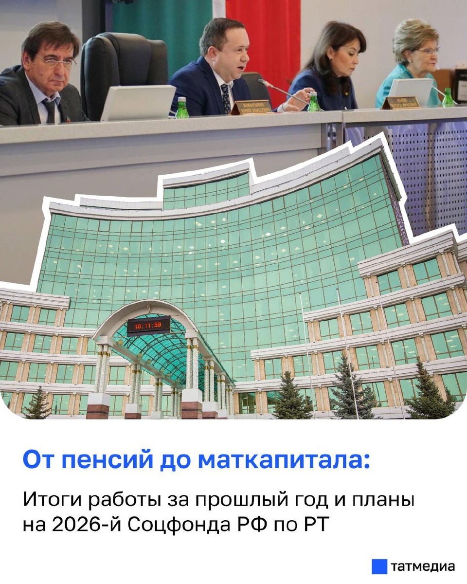 📁🔝В 2026 году татарстанцам проиндексировали пенсии и детские пособия Более миллиона услуг в год, флагманская клиентская служба в Казани, индексация пенсий и пособий, расширение поддержки семей, ветеранов и участников СВО – всё это обсудили на коллегии Отделения Социального фонда РФ по РТ. Подробнее - в карточках. @tatmediaofficial | Все каналы Татмедиа ™️ 1-й новостной MAX-канал Татарстана - подпишитесь.