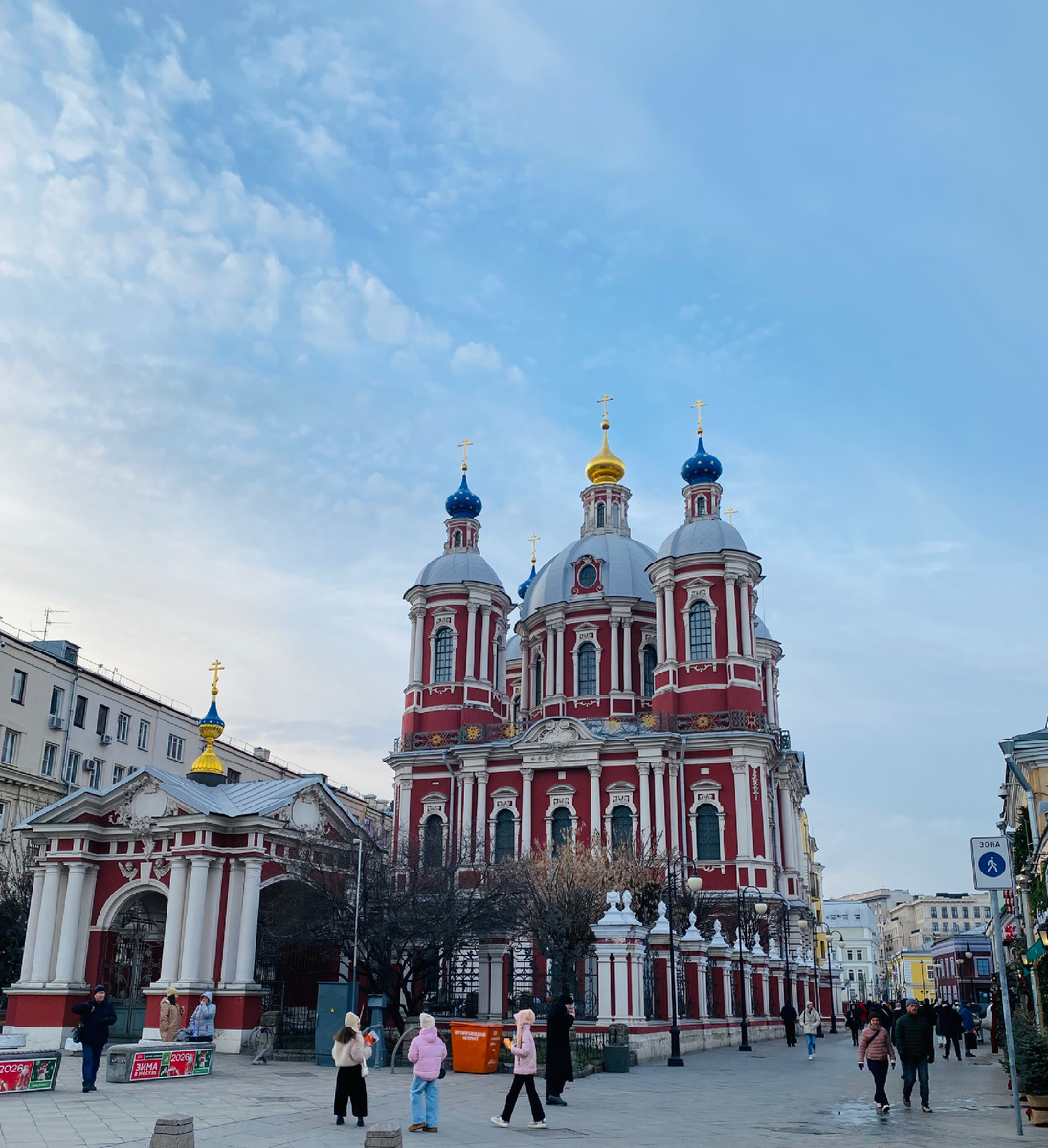 Я шла по Пятницкой, привычно ныряя взглядом в витрины и дворики, и вдруг замерла. Среди невысокой уютной московской застройки, стояло нечто совершенно иное — пышное, красно-белое, с колоннами и лепниной. Мой объектив сразу потянулся к этому контрасту: чужой среди своих, аристократ в купеческом кругу.