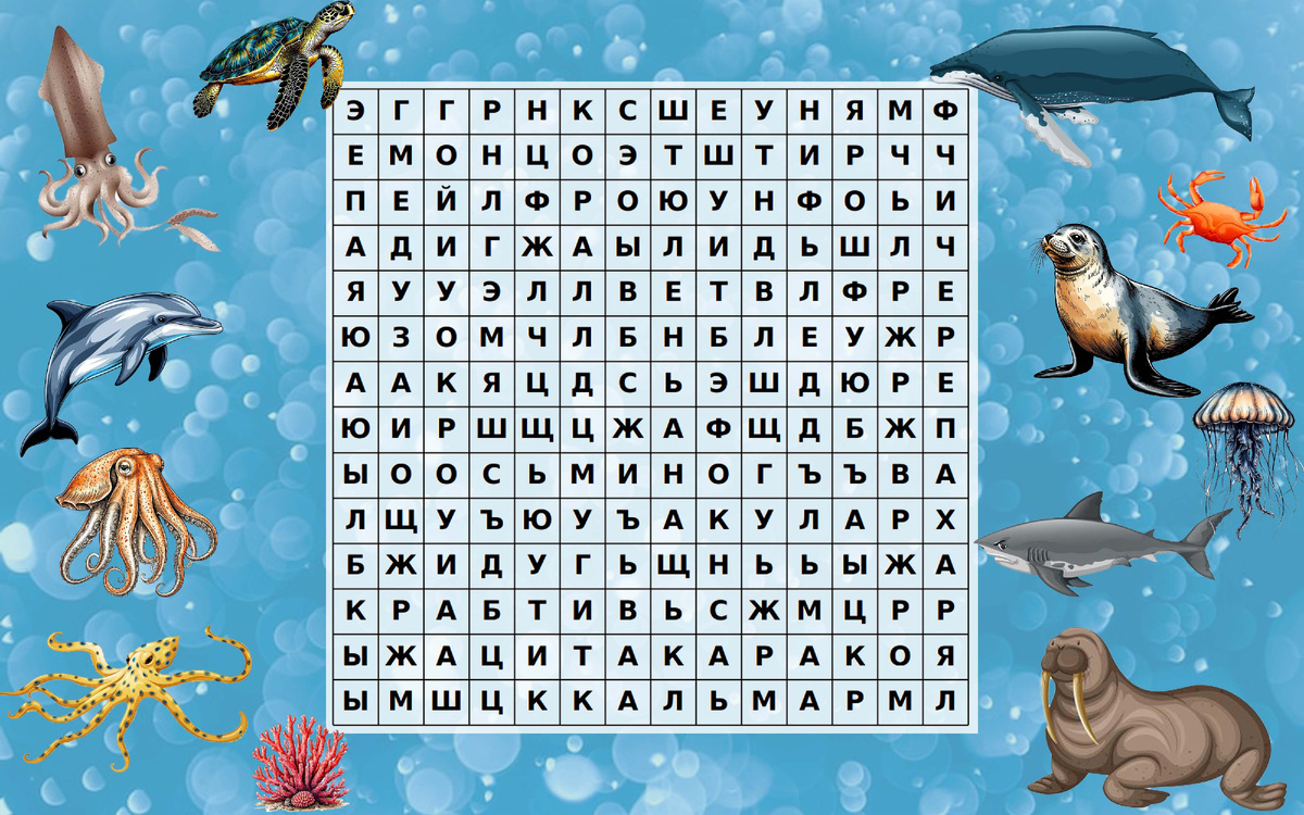 Найди слова, выпуск 24. Интеллектуальная охота за морскими обитателями начинается!