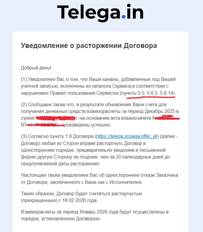 Из серии ДНО, а нет опять снизу постучали... Орем и рыдаем всей командой... 😂 Вернулся из отпуска, добрался до компа и решил все же ответить дырявой бирже телэга.ын на недавнее сообщение о том, что ЭТО ОНИ РАСТОРГЛИ С НАМИ ДОГОВОР! Ниже пункты на которые они ссылаются: ✅5.5. Указывать в описании Канала/Группы личные данные Исполнителя, цены Размещения материалов и иные условия Публикации, отличающихся от условий Сервиса, запрещено. ✅5.6.5. Канал или Группа не имеет цели принимать и Размещать материалы в рамках Сервиса. ✅5.6.14. Содержание Канала/Группы и/или аудитория Канала/Группы недостаточно качественны для Сервиса (в том числе, но не ограничиваясь, содержат: копипаст, контент низкого качества, большое количество грамматических ошибок, заведомо ложные сообщения и пр.). ❗️Расторгли договор не вы с нами, а мы с вами пункт 5.5 как раз сюда подходит, думайте, зачем это было сделано! ❗️Админы, а вы долго будете платить за биржу налоги, с разницы которую вы не получаете? 🤡 ❗️На