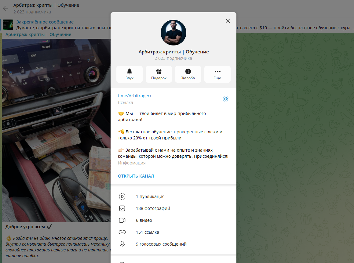 В Telegram подобных каналов — очень много. Меняются названия и эмодзи, но смысл один: обещают «безопасный арбитраж», «проверенные связки» и быстрый доход без риска, перекладывая всю ответственность на подписчиков. Канал «Арбитраж крипты | Обучение» — типичный представитель этой категории. 2623 подписчика, громкие заявления о «билете в мир прибыльного арбитража», бесплатное обучение и скромные на первый взгляд 20% от прибыли. Звучит привлекательно, особенно для новичков. Но если внимательно разобрать механику — иллюзии быстро исчезают. Если вы ищете более спокойные и прозрачные форматы заработка без «связок» и обещаний лёгкой прибыли, можно посмотреть здесь: 👉 проект без серых схем и доверия на словах. По описанию проект подаётся как: Такая подача создаёт ощущение честности и партнёрства: мол, если не заработаешь — никто ничего не возьмёт. Именно на этом этапе у многих и отключается критическое мышление. Ключевые моменты, которые обычно остаются за кадром: 📌 На практике подписчику пре
