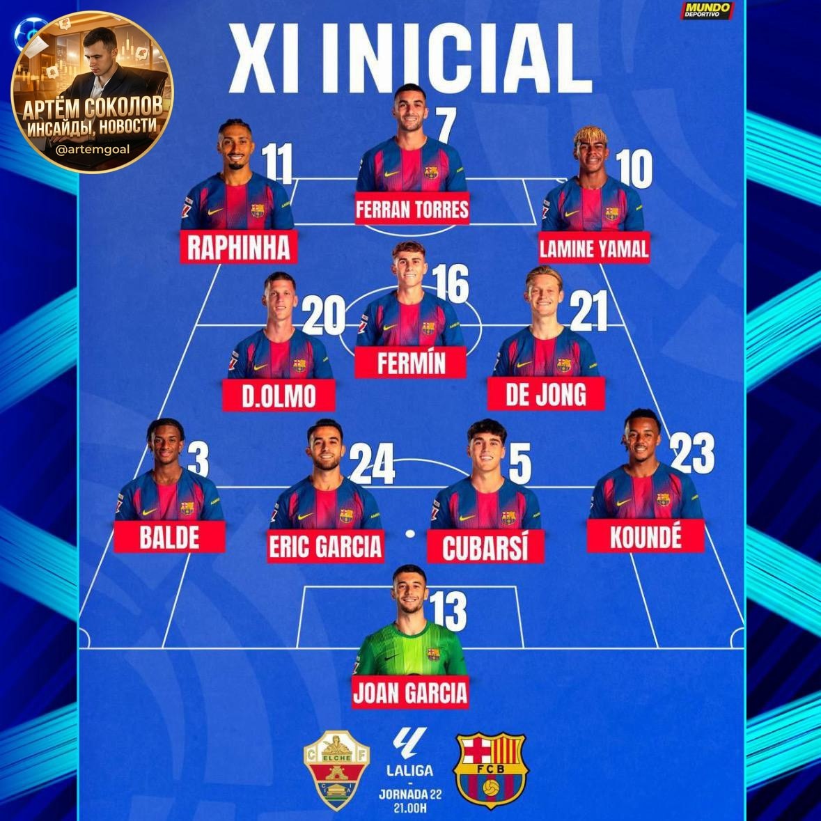 🇪🇸 Стартовый состав «Барселоны» на матч