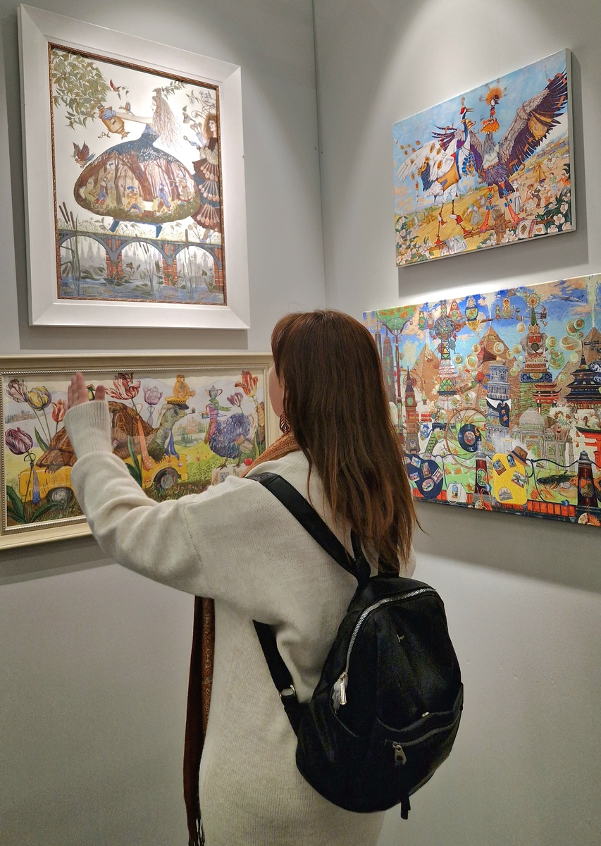 Первый стенд который нам попался был от художницы и российской эмигрантки Ланы Брайт, много лет прожившей в Голландии и в итоге вернувшейся в Россию. В ее работах очень много живой тоски по родине, передающейся через образы русских народных сказок.