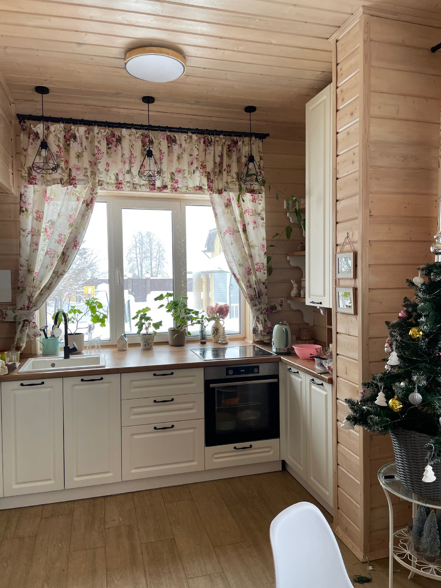 Смотрю на окно в кухонной зоне и подумываю о новых шторах. Кто-то из читателей отметил, что шторы не совсем походят к интерьеру, но мне они очень нравятся. Но хочу всё же повесить другие ближе к весне, пусть у моего дома будет и другой наряд.