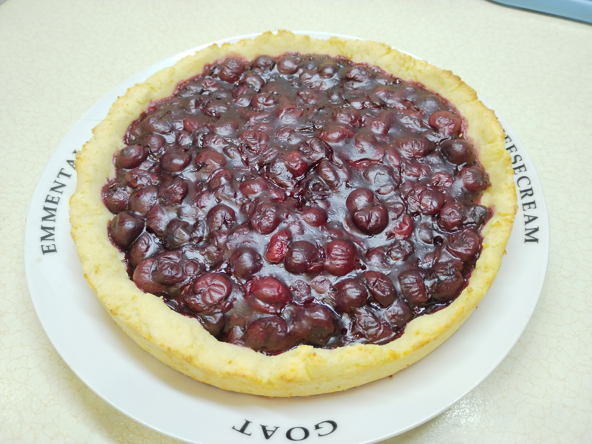 2. У меня силиконовая форма 20 см. Руками распределила тесто, сделала бортики. Дно надо немного проткнуть вилкой. Запечь в духовке 10 минут при 180 гр