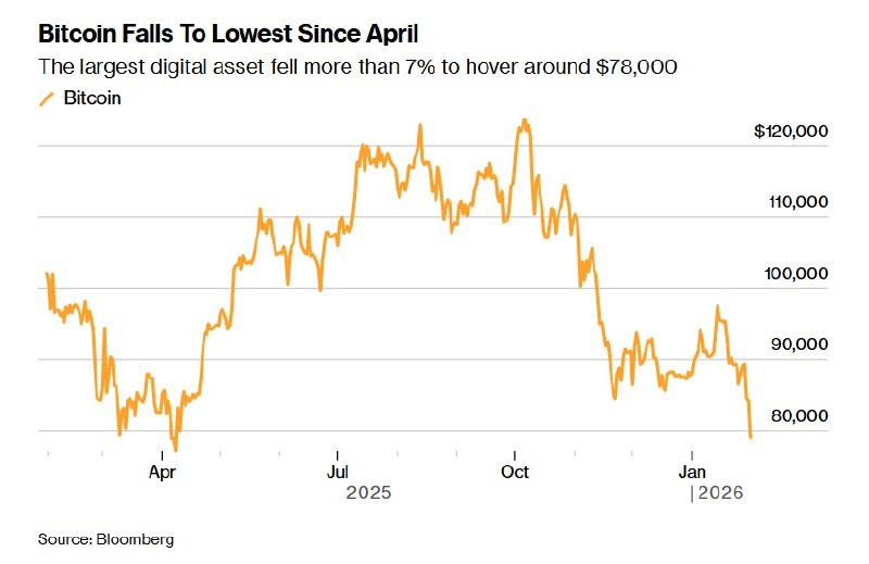 Курс биткоина опустился ниже $80 тысяч — до уровней весны 2025 года