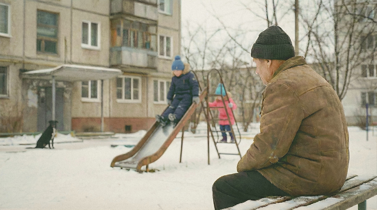Дети убежали на горку. Настя сразу полезла наверх, Кирилл - за ней. Геннадий Павлович сел на лавочку, смахнув снег рукавицей. Отсюда хорошо видно и горку, и качели. И подъезд тоже видно.