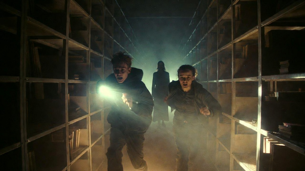 Замерцавшее на секунду освещение в зале выдало её: это была не просто угроза, а начало действия. Артём, действуя на чистом адреналине, рванул в сторону, опрокинув тяжёлый деревянный стул на пути у незнакомки. Грохот на милисекунду отвлёк её. «Бежим!» — крикнул он Софье, и они бросились прочь от стола, вглубь лабиринта книжных стеллажей. Шаги преследователя зазвучали сразу, быстрые и чёткие. Они выскочили из читального зала в тёмный коридор, ведущий к служебному выходу. Софья, знакомая с планировкой здания, рванула налево. «Туда! Лестница в фонд!» Они слетели по узкой винтовой лестнице в полуподвал, где в воздухе висела запаха старых книг и пыли. Света не было. Артём, выхватив телефон, включил фонарик. Луч выхватил из тьмы бесконечные ряды металлических стеллажей с папками. «Здесь!» — Софья юркнула в узкий проход между ними. Они бежали, сбивая с полок облака пыли, их дыхание стало хриплым. Сверху, с лестницы, донеслись шаги. Незнакомка не отставала. Артём вспомнил истории о тайных ходах