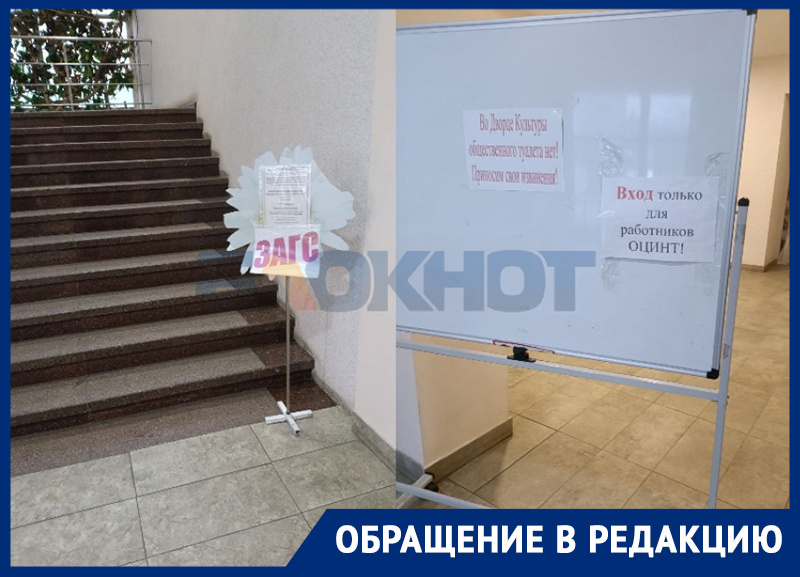 В чат-бот «Блокнот Запорожье» написал житель города Мелитополя. Он рассказал о нововведениях в местном Доме культуры, в котором располагается ЗАГС. По словам читателя, посетителей госоргана не пускают в туалет.