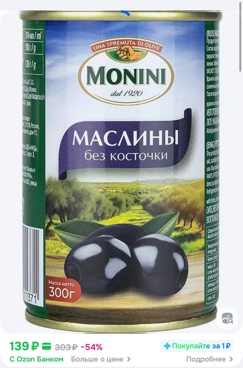 😀😀😀Маслины Monini без косточки, 300 г