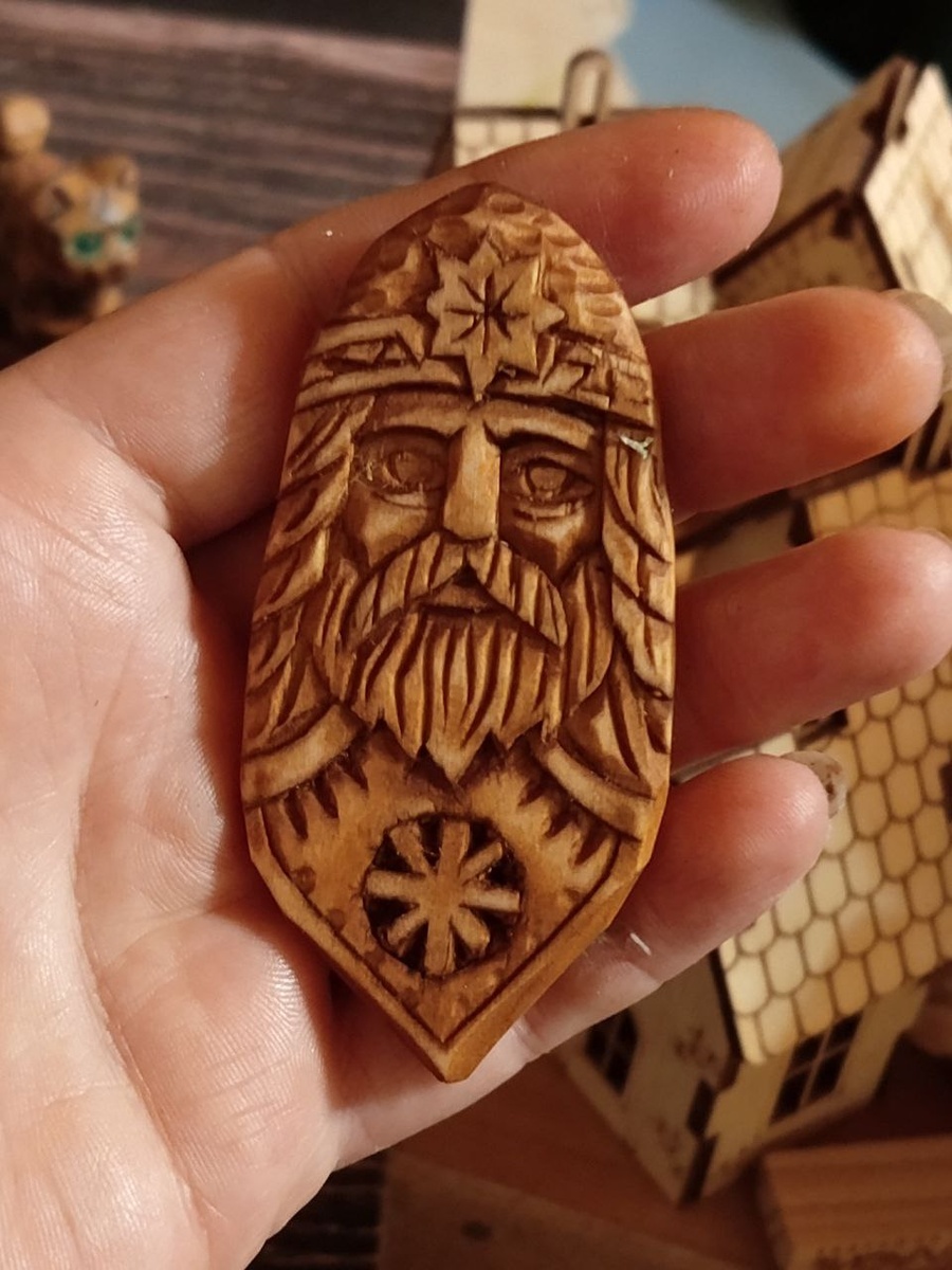 Кулон ручной работы с изображением лика Перуна — верховного славянского бога-громовержца, покровителя воинов, защитника мира Яви и подателя жизненной силы. Солярный символ — знак солнечной энергии, очищения и божественного покровительства. Детали работы: • Материал: цельный массив липы • Покрытие: морилка на водной основе, льняное масло • Размер: ~ 8х4см • Комплектация: натуральный вощёный шнур в подарок Символика: — Лик Перуна: защита от тёмных сил, укрепление духа, справедливость и решимость. — Солярный символ (на обороте): солнечная энергия, жизнь, очищение, божественное благословение. — Натуральное дерево липы: связь с природой, тёплая и живая энергетика. Идеально для: • Ношения как личный защитный амулет. • Подарка мужчине (воину, защитнику, главе семьи). • Дополнения этнического образа или повседневного стиля. • Оберега в путешествие или для важных начинаний.