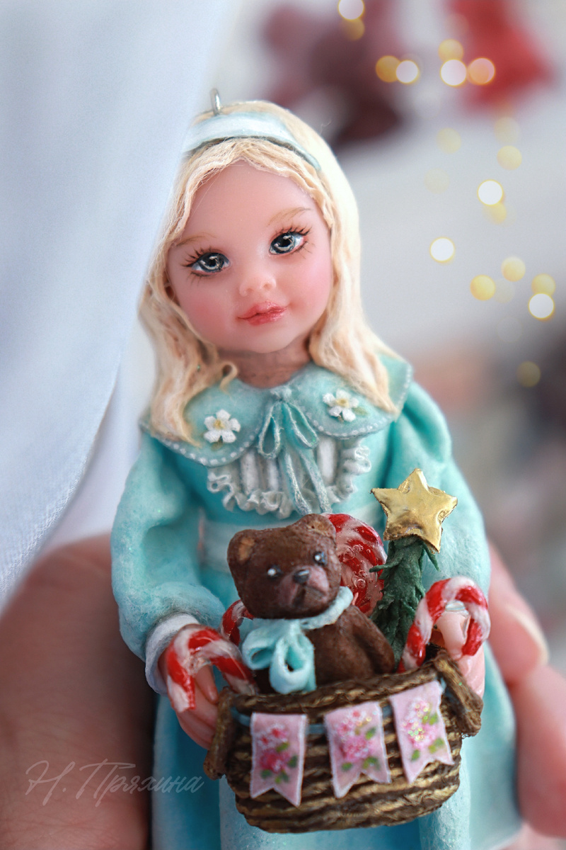 Это первая куколка, сделанная мной в этом году. Элис сделана из хлопковой и льняной ваты, личико и ручки полимерная глина. В работе также использованы джут и стразы Swarovski. Волосы — нежный и блестящий вискозный шёлк. Аксессуары выполнены мной вручную из джута, ваты и полимерной глины. Рост игрушки 11,5 см (без учёта подставки), с подставкой 13,2 см. Куколка может стоять на столе для радости и вдохновения, может украсить новогоднюю ёлку. Спасибо, что посмотрели, всем хорошего дня.