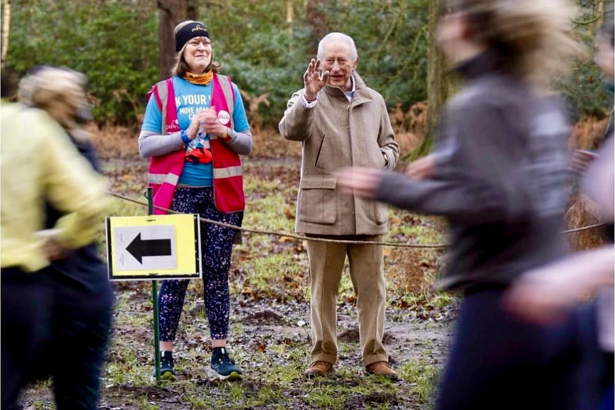 Утренний забег Sandringham parkrun в поместье Сандрингем в графстве Норфолк получил неожиданный поворот: у трассы появился король Карл III. По