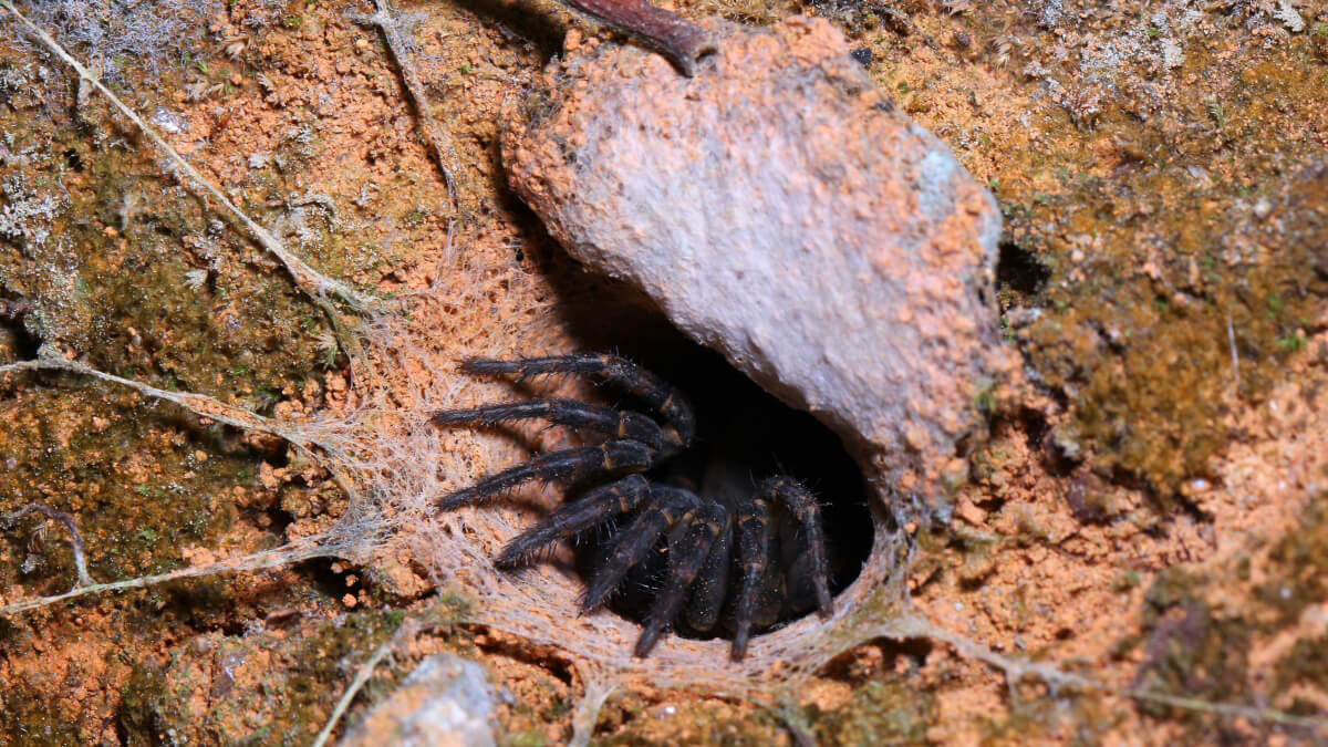 Когда паук-люк успешно ловит добычу, он затягивает её в нору и начинает питаться.