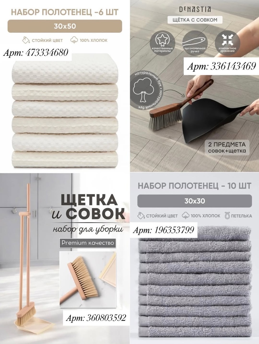 4) Набор полотенец, 10 штук, 30×30